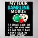 My Four Gambling Moods Funny Casino Gambler Quote Poster