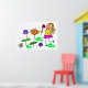 Cute cartoon whimsical illustration of a happy little stick figure girl picking flowers from the garden. Easily customise and choose your own background colour or add text. Image available on various gifts and products.
