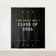 Celebrate your graduation in style with this 'My Grad Era Class of 2026' photo backdrop. Featuring a sleek black background adorned with golden stars and bold text, this tapestry is perfect for creating a memorable graduation party or photo booth experience. It's an ideal way to commemorate this significant milestone and capture lasting memories with friends and family. The minimalist yet striking design ensures it will be a standout feature at any graduation celebration, making it a cherished keepsake for years to come.