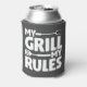 Fun barbeque graphic quote that reads: "My Grill My Rules", featuring a bbq fork and spatula. Click "Personalise" to change image and background colour! | Image by Badea Mihai | Shutterstock. Image ID: 1742273987 | Shutterstock® - All Rights Reserved.