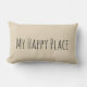 A playful accent pillow with the words "My Happy Place"
