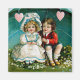Vintage Victorian Valentine's card illustration with the greeting, "My heart beats warm, as warm as can be, And this is 'cause of loving thee."