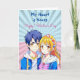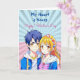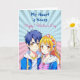 A sweet pop art Happy Valentine's Day card depicting an anime boy and girl couple in blue and pink. On back is a colouring page where you can personalise the names. Valentine's Day card for him or her.