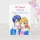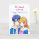 A sweet Happy Valentine's Day card depicting an anime boy and girl couple in blue and pink. On back is a colouring page where you can personalise the names. Valentine's Day card for him or her.