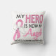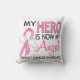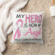 Your loved one fought breast cancer bravely. This pillar of courage became your Hero. And, now, this hero is your angel. Honour and remember this incredible person while relaxing at home with My Hero Is Now My Angel breast cancer tribute throw pillow featuring contrasting text fonts and a pink breast cancer awareness ribbon adorned with beautiful fluttering angel wings. As cancer survivors, survivor spouses, and avid awareness supporters, we are pleased to donate regularly to charity organisations committed to supporting those in need and warmly ask that you think of us first for all of your breast cancer awareness and support needs.