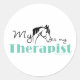 This equine quotes Design features text that says "My horse is my therapist" with the image of a horse head in place of the word "horse." Great for horse lovers and equestrians who find relief from the stresses of life from their horse!