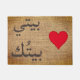 Boldly welcome guests with the Arabic phrase بيتي بيتُك (“My house is your house”) displayed in dark brown lettering on a rustic burlap-look doormat, complete with a charming red heart. This durable, farmhouse‑style mat adds Middle Eastern flair to any entryway and celebrates Arab hospitality. Perfect for Arabic families, language students, or anyone who appreciates warm, cultural décor.