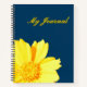 A Journal. Cover dark blue background with big yellow flower.