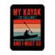 Awesome kayaking design T-shirts, posters, bags, planners, and more featuring a silhouette kayaking on a river with text that reads My Kayak is Calling and I Must Go! This colourful kayak design is great for the kayaker who just can't seem to get enough time on the water kayaking!
