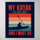Awesome kayaking design T-shirts, posters, bags, planners, and more featuring a silhouette kayaking on a river with text that reads My Kayak is Calling and I Must Go! This colourful kayak design is great for the kayaker who just can't seem to get enough time on the water kayaking!