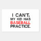 MY KID HAS BASEBALL PRACTICE RECTANGULAR STICKER