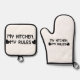 Add humour and personality to your kitchen with this “My Kitchen My Rules” oven mitt and pot holder set. Designed for people who love cooking and taking charge in the kitchen, this set is both practical and stylish.