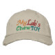 Name your Dog ! Actually, my Shih Tzus (Big Jake, Southern Sadie, and Gutsy Gogee) don't chew on my cap. They go wild when I put it on, because it signifies "going for a walk". If I want to wear it just to do yard work, I have to sneak the cap outside under my shirt.