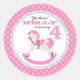 Pink polka dot print with sweet rocking horse.