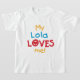 My Lola Loves Me T-shirts, cards, stickers, bodysuits bags, and more with colourful red, yellow, and blue text and heart design. These Lola Loves me apparel and gift items will make lola smile!