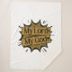 This blanket showcases a design that features an Afrah print font with black letters with a black and golden coloured background theme displaying the phrase "My Lord My God” with crosses on each side of the wording in this faith based bible theme. This Blanket features a vivid image on one side and the softest Sherpa available on the reverse made from 100% polyester and printed mink with ultra-soft sherpa backing.