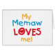 My Memaw Loves Me T-shirts, bodysuits, cards, stickers, tote bags, magnets, stickers, and other Memaw Loves Me apparel and gifts with a blue, red, and yellow text design.