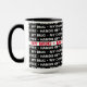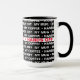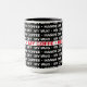 For the serious coffee drinker. This mug has a repeating pattern of text that reads "MY MUG • MY COFFEE • HANDS OFF" The rim and handle come in your choice of 5 colours, shown here in black. You can also customise the black background a colour behind the text.