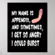 Add some fun to your post-surgery life with this funny My Name Is Appendix and Sometimes I Get So Angry I Could Burst appendicitis design. This design makes a great gift for recovering appendectomy patients.