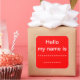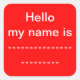 These square stickers are red with "Hello my name is___". These name tags are great for business meetings, gatherings, or employee name tags.