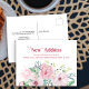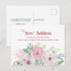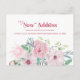 Pretty floral Moving Announcement postcard with watercolor peonies, pink flowers and botanical greenery. The title reads "my New Address" (which you can edit to "our new address" if required), followed by your name(s) and new address. Attractive design with decorative pink typography and personalised message on the back.