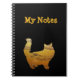 My Notes, Back to School Notebook, Cat Lover Musical Notes, Black and Gold Spiral Notebook