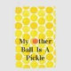Sometimes, as shocking as it sounds, pickleballers actually play other sports, like golf. But, as most pickleball players know, if you're not playing pickleball you're thinking about pickleball or talking about it. So, of course, you might as well show your love for your favourite game on the other balls you play with. Yellow indoor and outdoor pickleballs on the background with the words - My Other Ball Is A Pickle - and the O is replaced by an orange pickleball.