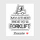My other ride is a forklift in black uppercase mixed font with an icon image of a person on forklift truck.
