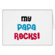 My Papa Rocks T-shirts, cards, stickers, tote bags, magnets, buttons, and other items with a black, blue, and red text design. These My Papa Rocks items are a great way to show your love for your special papa!