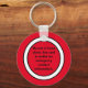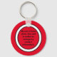 Make sure your pet is taken care of if an emergency happens to you. This keychain tells emergency workers that your pet is alone, and that you have emergency contact information in your wallet. Attention-getting keychain is red and white. Text in black says, "My pet is home alone. See card in wallet for emergency contact information."