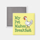 My Pet Makes Breakfast cute magnet featuring a cartoon chicken. A great magnet for a backyard chicken owner. Add some humour to your fridge with this chicken magnet!
