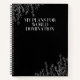Simple minimalist Korean style black and white design with lined leaves, featuring a funny saying "My Plans For World Domination"