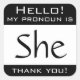 Make your preferred third-person personal pronoun easy to spot with this handy sticker.