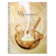My recipes; text to customize over a copper bowl of cream with a kitchen whisk