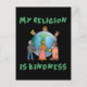 People holding hands around the Earth. Based on the Dalai Lama quote: "My religion is very simple. My religion is kindness."