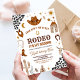 Celebrate your little buckaroos big milestone with this "My Second Rodeo" cowboy birthday invitation! Featuring a rustic Southwestern design with vintage boots and desert accents, its the perfect way to set the stage for a wild West two-year-old adventure. This editable template is easy to customise with your party details, ensuring your ranch-themed celebration starts with style. Saddle up for a memorable day that friends and family will love!