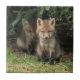 Two red fox kits enjoy the shade of an evergreen on a warm Spring day.