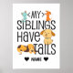 My Siblings Have Tails design with personalized name. Want this design on a different product? Click on "VIEW ALL PRODUCTS" on the upper left of this description and choose the item that you want. You can then adjust the size of this design to fit to the product you've selected. You can also change the color for the name option. We have thousands of designs to choose from in our store for the entire family!
