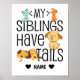 My Siblings Have Tails design with personalized name. Want this design on a different product? Click on "VIEW ALL PRODUCTS" on the upper left of this description and choose the item that you want. You can then adjust the size of this design to fit to the product you've selected. You can also change the color for the name option. We have thousands of designs to choose from in our store for the entire family!