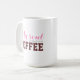 A coffee lovers mug designed with pink, brown, and grey letters making up the phrase: "My Soul is filled with COFFEE".