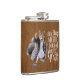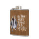 The flask itself is fine. It’s a cheap flask, obviously bought in bulk, however am prepared to overlook that. Given that it is a personalized item, I would have liked to have seen gift boxing instead of the generic packaging. Terrible printing, and/or quality. It’s a cheap, tacky vinyl. It is not cut straight and is also applied in a way that it is overhanging the bottom, causing the glue to catch on items and it will eventually roll and tear, damaging the wrap.