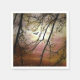 A calming nature design with a beautiful sunset, trees and a bird flying through the air.