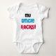 Text design that reads My Uncle Rocks, great for both nieces and nephews that think their uncle is the best! My Uncle Rocks T-shirts, long sleeve tees, football bodysuits, organic bodysuits, hats, sweatshirts, and much more.