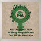 Fight back against the GOP Teabagger War On Women. Symbol for Woman has Republican elephant in centre with an X, surrounded with "My Uterus, Inc" and the words "INCORPORATED to keep Republicans out of my business."