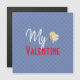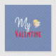 My Valentine has muted periwinkle blue hearts sprinkled over a bed of blue, and finished with a decorative typography accompanied by young cupid.