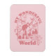 Check out this cute retro design featuring a phrase about loving my wonderful world.