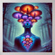 A surreal and symbolic artwork depicting a luminous humanoid figure with vibrant, glowing mushrooms sprouting from their head and chest. Set in an enchanted, misty forest, this visionary piece represents transformation, expanded consciousness, and the deep symbiosis between the human mind and nature. The radiant fungi symbolise psychedelic enlightenment, spiritual growth, and the boundless interconnectedness of existence. The ethereal glow and dreamlike atmosphere evoke a sense of mysticism, guiding the viewer into a realm of introspection and transcendence.