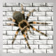 Poster. A wall of white bricks. A mygal spider (Brachypelma smithi) is depicted as if it were standing on this wall. The spider has a brown-gray hairy body with orange legs, giving an impression of three-dimensional realism