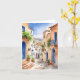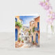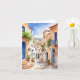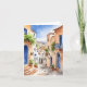This greeting card features a watercolor portrait of Mykonos, Greece.