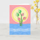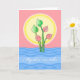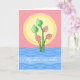 Myslim na teba, Thinking of you greeting card written in Slovak. Digital illustration of a lotus flowers rising up from waves of water. A glowing sun and pink sky fill in the background. Blank inside for your personal message. Art, image, and verse copyright © Shoaff Ballanger Studios.